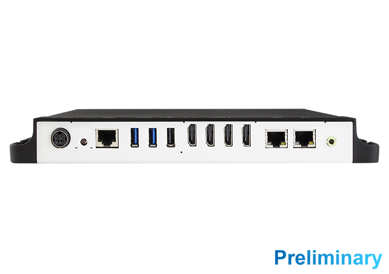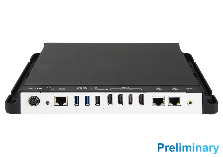 | I/O Interface | 4x HDMI 2.1 with hardware EDID emulation & CEC function 1x USB 3.2 @gen 2 (USB Type-A) 2x USB 2.0 (USB Type-A) 2x RJ45 for Gigabit LAN 1x RJ45 for RS-232 serial port 1x Audio connector for Line-out 1x Power button 1x Power jack (+12V DC) 2x Power/HDD LED |