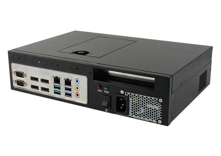 x 193(d) x 31.5(h) mm, it offers rich I/O connectivity, storage, expansion capabilities and supports 4x COM, 3x USB3.1, 2x USB2.0, a 2.5” drive bay and a PCIe(x16) slot for riser cards expansion.