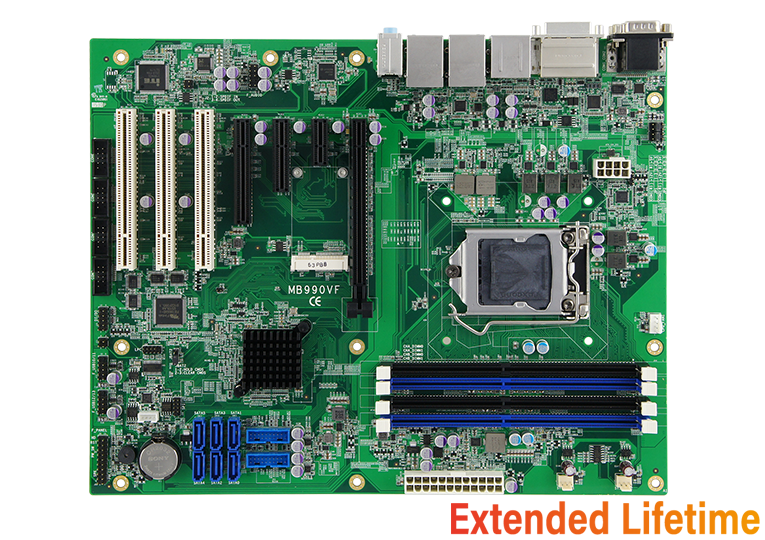 The MB990 ATX motherboard supports Intel's newest 7th/6th Gen Intel® Core™ processors. It features LGA1151 socket for 7th/6th Gen Intel® Core™, Pentium or Celeron processors based on the code-named “Skylake-S” micro-architecture. The motherboard supports four DDR4 DIMM slots for up to 64GB of memory, four USB 2.0, ten USB 3.0, six COM and six SATA III ports, as well as graphics interface for DVI-D, HDMI and DisplayPort displays.